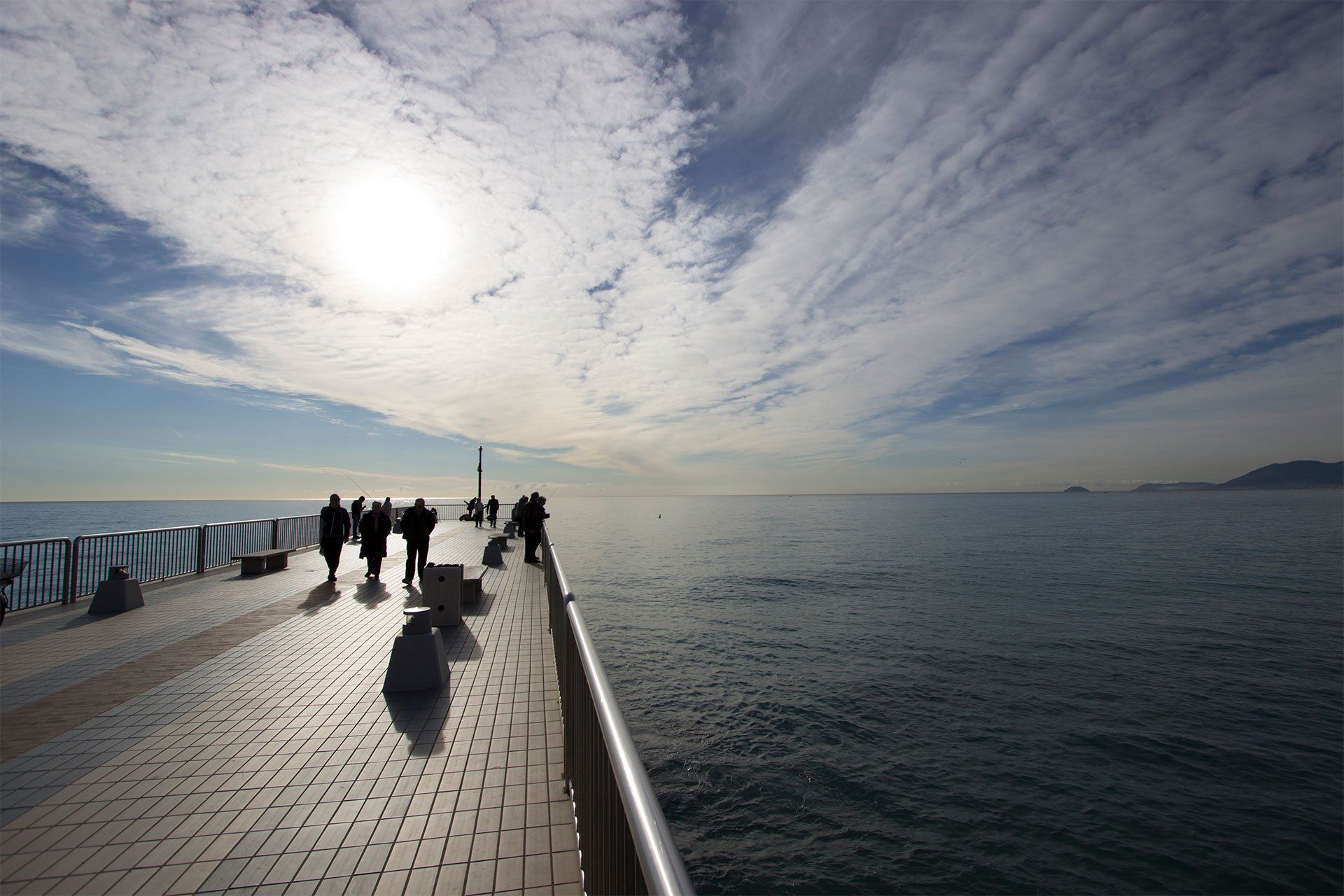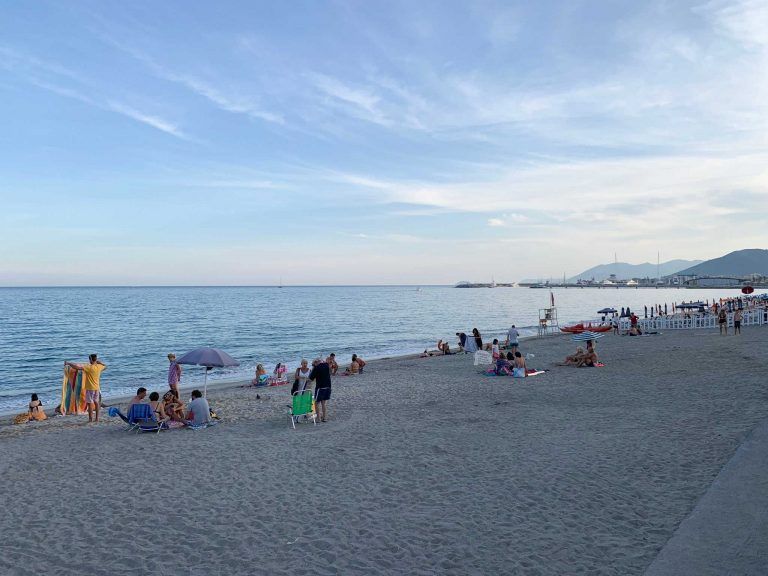 Der breite Sandstrand von Pietra Ligure wird von einem der schönsten und saubersten Gewässer der ligurischen Riviera umspült.